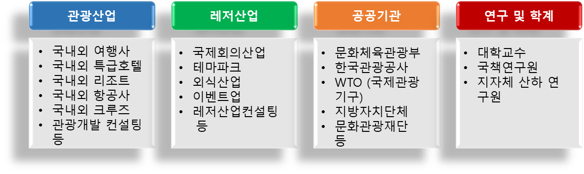 문화와 관광이 새로운 화두로 떠오른 21세기, 사회 각 분야에서는 창의적 사고와 실무 역량을 겸비한 전문 관광인재를 필요로 하고 있습니다. 국립경국대학교 문화관광학전공은 국내 최고의 관광인재 양성기관이라는 자부심 아래, 졸업생들이 국내외 관광기업, 관광 관련 산업체, 공공기관, 대학 및 연구기관, 국제기구 등 다양한 분야로 진출하여 활약하고 있습니다.